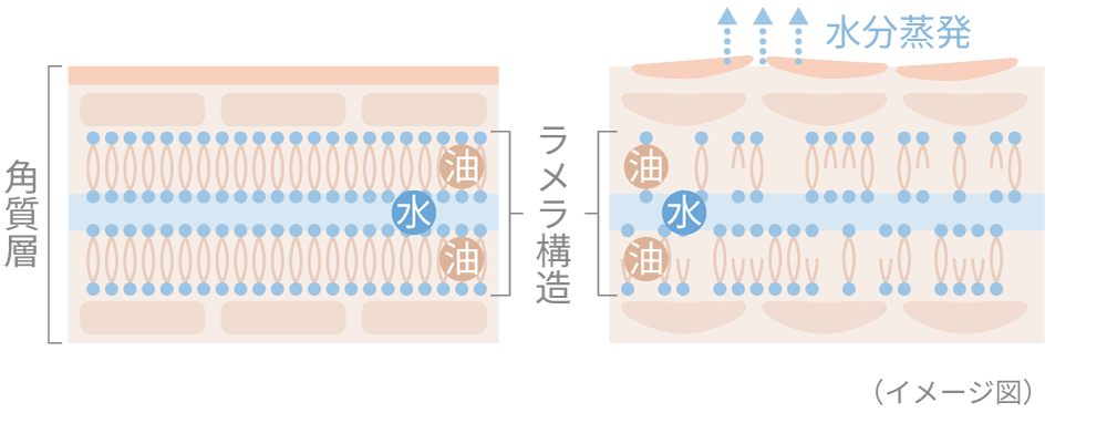 この構造が乱れると、肌から水分が蒸発し、